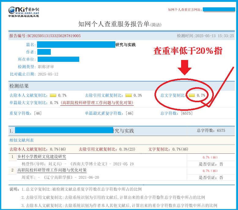 有的地方,查重报告不仅要提交简明报告(一般一页),还要提交全文查重报告(十几页、几十页不等)。审核和评审时还要“随机查重”,也就是从论文中随便选取一段(非引用部分)查重。