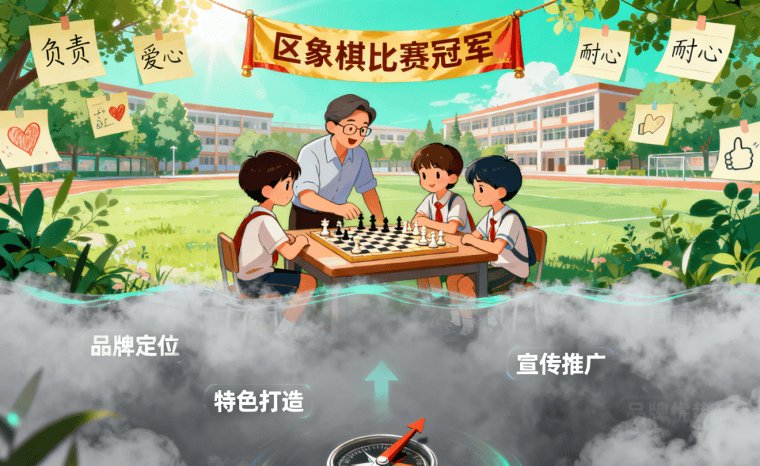 定位模糊,缺少“一句入魂”的记忆点。“棋艺好”是描述,不是定位。学校缺乏一句能让人记住、能概括其独特价值的“品牌口号”。当家长被问起“这所学校怎么样”,他们只能回答“孩子在那里学下棋”,但无法清晰地说出“这所学校最打动我的是什么”。梁校长有意打造“棋艺”特色,但在办学理念、办学口号都没体现一丝一毫,这更让家长觉得,棋艺就是孩子一个兴趣课。