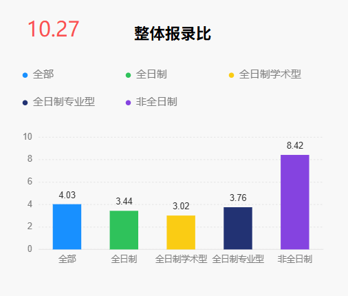 华南师范大学在官网实时更新各专业报录比;10.27日的最新报录比为4.03,相比于之前公布的数据,明显有所上升;
