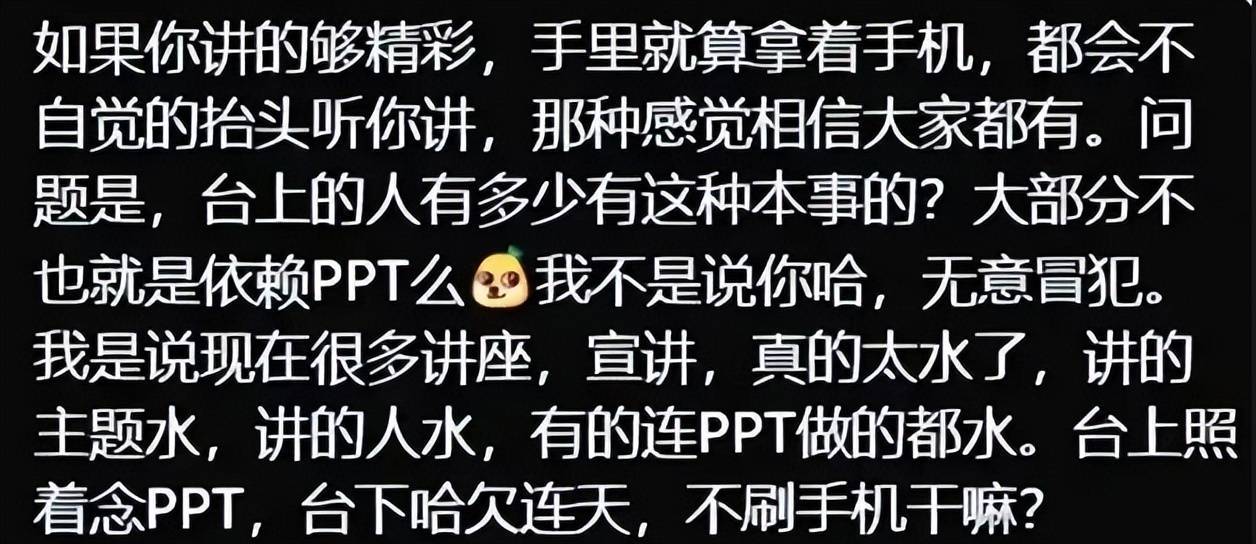 学生之所以吝啬他们的注意力,是因为他们潜意识里在衡量:“我付出的这段时间,能换回什么?是即时的知识、未来的机会,还是仅仅一张已参与的证明?’”当讲座无法提供高于手机内容的价值回报时,他们的选择,与其说是素质差,不如说是一种基于本能的注意力经济决策。