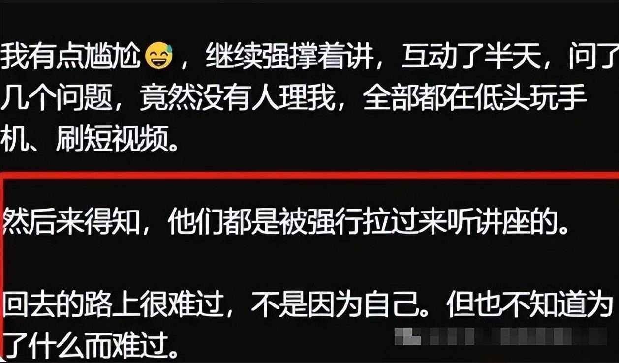 讲座结束后,意难平的教授在网上发帖,字里行间满是乘兴而来,败兴而归的失落,甚至将问题归结于二本学生的素质。