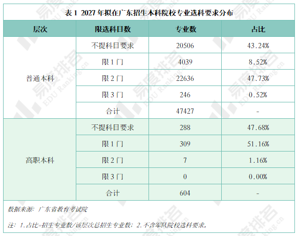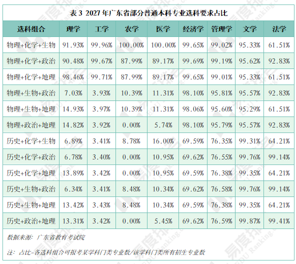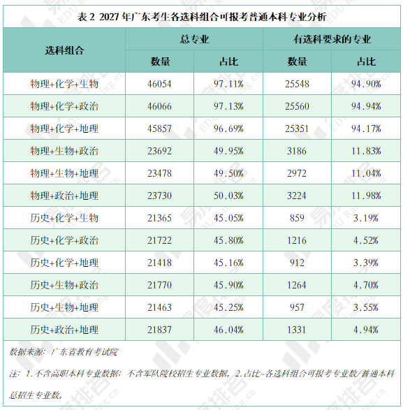 2025年广东省教育考试院发布了《2027年起拟在广东省招生的普通高校专业选考科目要求》(以下简称:2027年选科),该选科要求适用于2027年及以后参加高考的考生,本文主要针对2027年选科进行分析。