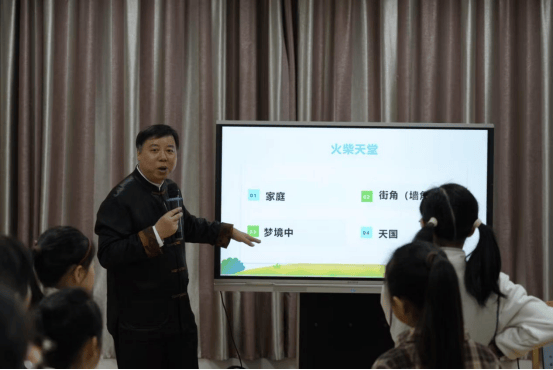 活动现场,孩子们在“放烟花”的模拟游戏中,尽情释放着童真与欢乐,气氛热烈而有序。“动物猜拳”环节则激发了孩子们的竞争意识与团队协作能力,他们在游戏中学会了公平竞争与友好互助。而“火柴天堂”这一富有创意的游戏,更是将孩子们带入了一个充满想象与探索的世界,孩子们在老师的引导下,展开丰富的联想,将这些场景与戏曲元素相结合,进行即兴表演和创作,更好地理解和表达自己的情感。