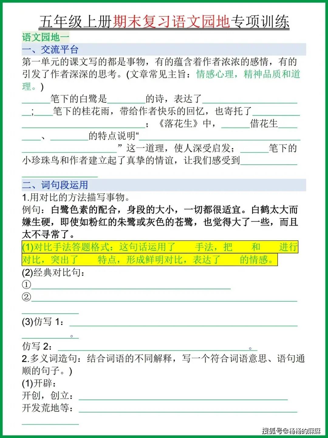 五年级是语文学习 “从基础积累转向综合运用、从单一能力升级为多元素养” 的关键阶段,既要巩固字词根基、熟练阅读技巧,更要提升写作表达的精准度与逻辑感。这份五年级上册语文期末复习资料,精准对标学期核心学习目标,从积累、方法到运用层层递进,既是日常知识巩固的实用工具,也是期末冲刺的优质帮手,全方位助力学生查漏补缺、提升语文成绩与核心素养!
