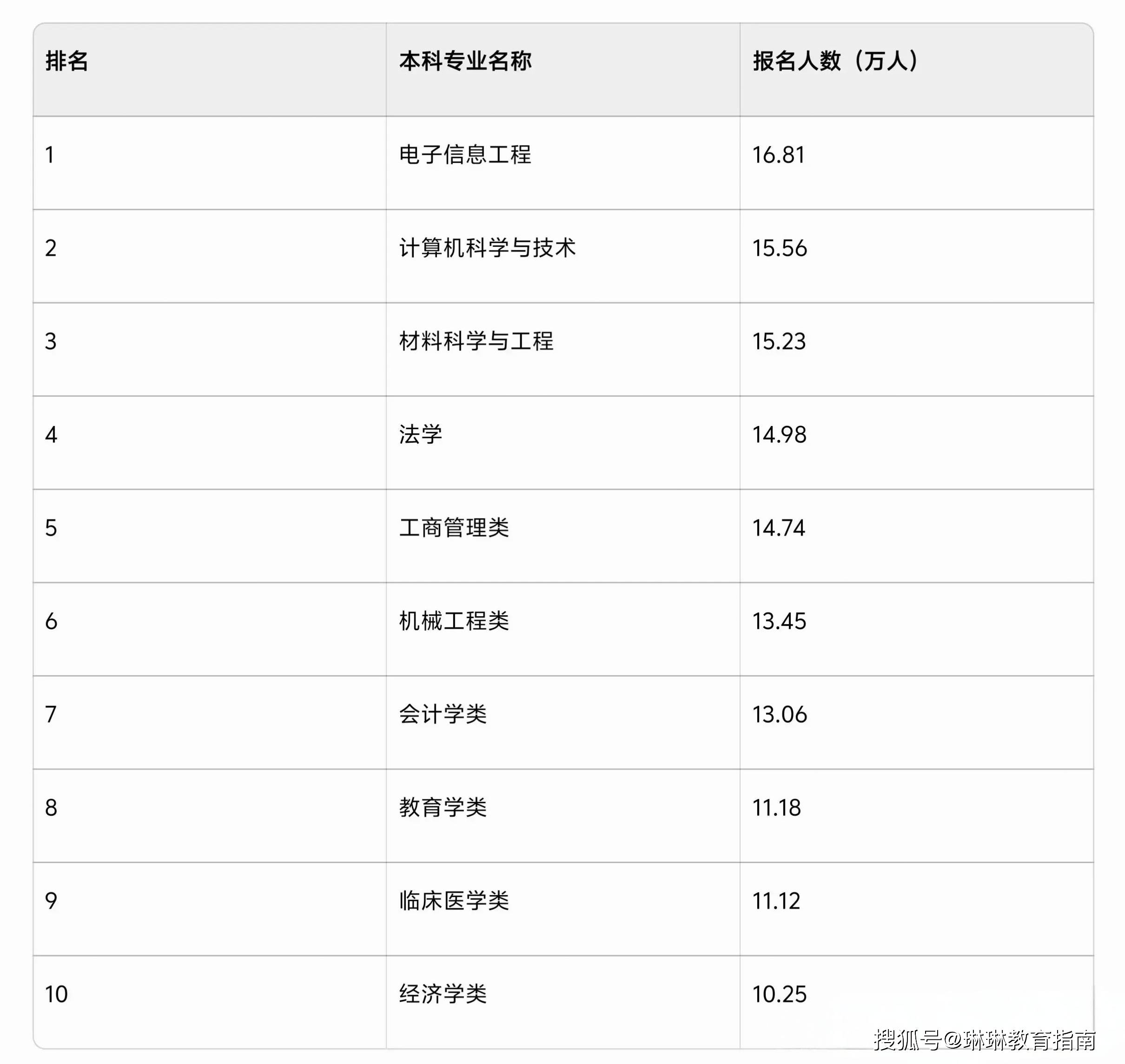 位于榜首的专业是电子信息工程专业,该专业据统计有16.81万人报考研究生,这个专业如今已经挤掉了计算机专业,成为了当之无愧的香饽饽榜首,无论是芯片还是硬科技,该专业都是热门行业最稀缺的人才。