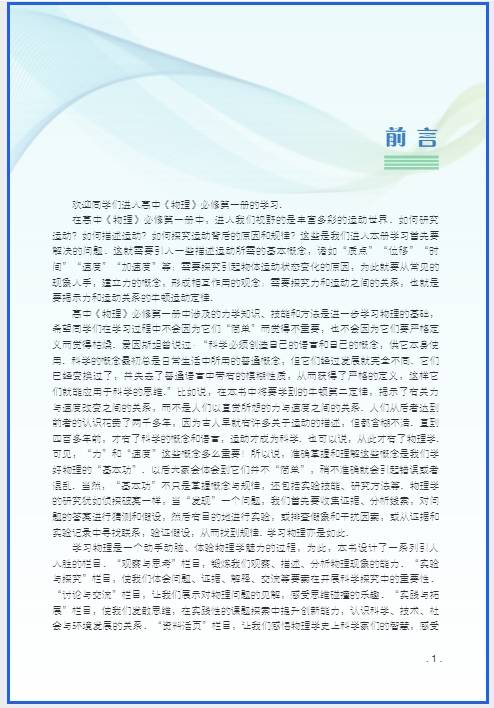 2025年学生将迎来新版教材,新教材将更加重视思维和阅读!为了方便广大学生在暑假预习新学期的课本知识,我们整理了2025新粤教版高中物理必修(第一册)一电子课本,以图片的形式呈现给大家,希望对同学们的暑期学习有所帮助。