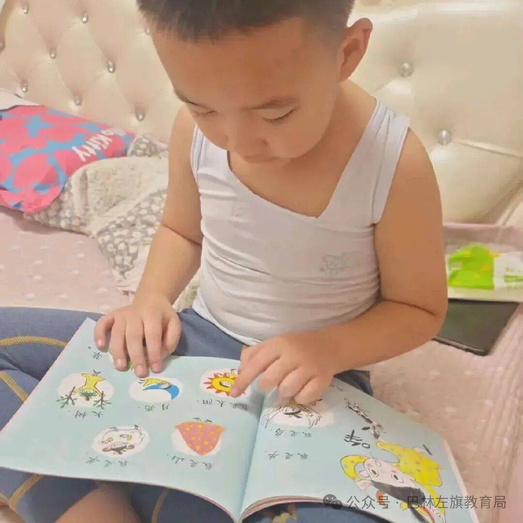 大三班 侯潇然:“每天的阅读时间像个“小约定”,盼着爸爸妈妈放下工作陪我读书,这是一天里我最期待的时侯。我喜欢和爸爸妈妈一起读书,因为看到不认识的字妈妈会特别温柔的教我,爸爸还会耐心的给我讲故事里发生的有趣的事。”