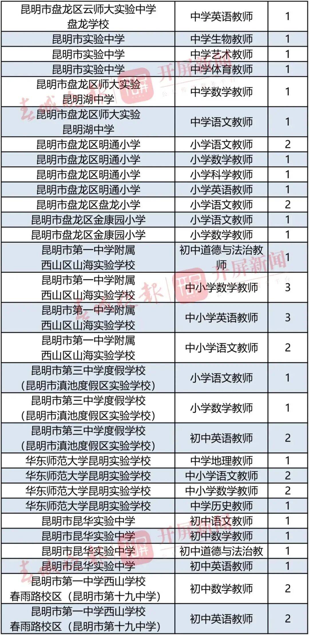 详细招聘要求请登录昆明市教育体育局官方网站查看。