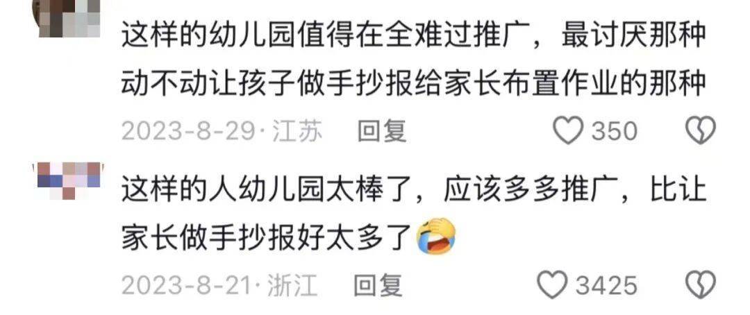 一位家长看完孩子的视频,忍不住发朋友圈:“看得我都想请假去上幼儿园。”