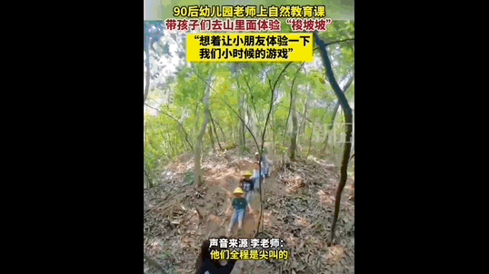 在贵州铜仁的“自然教育园”,老师们干脆带孩子玩起了“梭坡坡”(当地话的滑坡游戏)。孩子们从山坡上呼啸滑下,裤腿沾满泥,笑声飞上天。