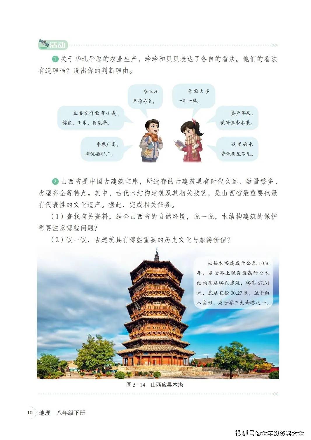 在秦岭 - 淮河线的基础上,教材进一步拓展到四大地理区域的划分,明确以秦岭 - 淮河线、400 毫米年等降水量线和青藏高原边缘线为三大划分依据,将中国清晰划分为北方地区、南方地区、西北地区和青藏地区,精准界定每个区域的范围与边界,让你对中国地理分区有直观且准确的认知。针对北方地区和南方地区这两个重点区域,教材从地理位置、地形地貌、气候特征、农业生产、特色物产等多个维度展开深度解析,比如北方地区的华北平原、东北平原是重要的粮食产区,旱作农业历史悠久;南方地区的长江中下游平原河网密布,水田农业发达,鱼米之乡的特色鲜明,每个区域的地理特征都立体鲜活,让你轻松记住核心考点。