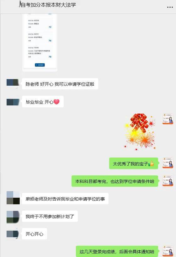这些聊天记录里,一句句真挚的感谢,是学员们对班主任工作的高度认可。从学习计划的制定,到每一个知识点的答疑解惑,再到考试前的心理疏导,班主任老师们全程陪伴,用专业与爱心为学员们的自考之路保驾护航。