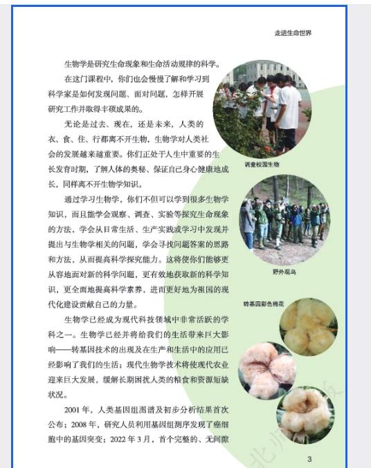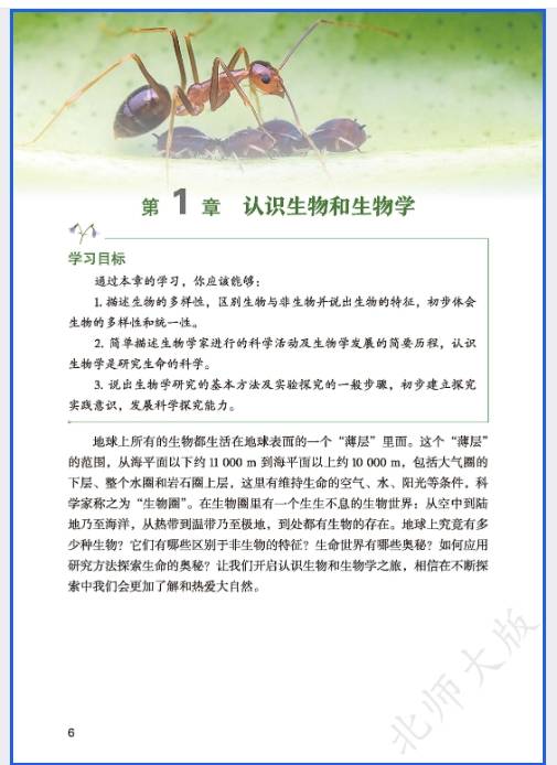 北师大版七年级生物学(上册)电子课本可以方便大家随时随地预习或复习课本知识,为此,我们找到了北师大版七年级生物学(上册)新教材电子书教材的全部内容,以高清图片的形式呈现给大家,希望能够提高大家的学习效率。