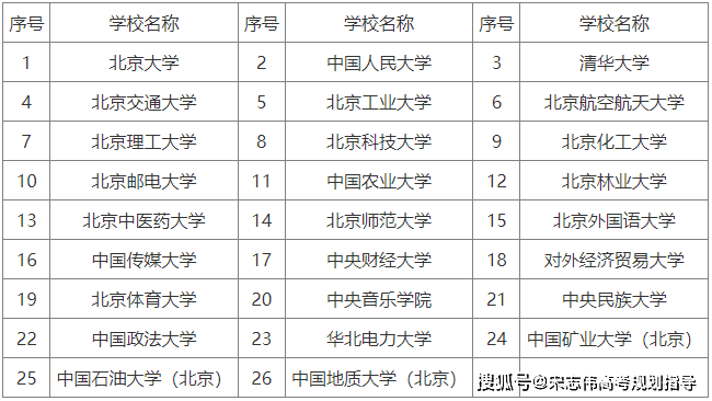 2026北京市大学名单一览表就为大家介绍到这里,更多关于北京市各大学录取分数线、王牌专业、招生计划等内容,请关注宋志伟志愿交流平台。