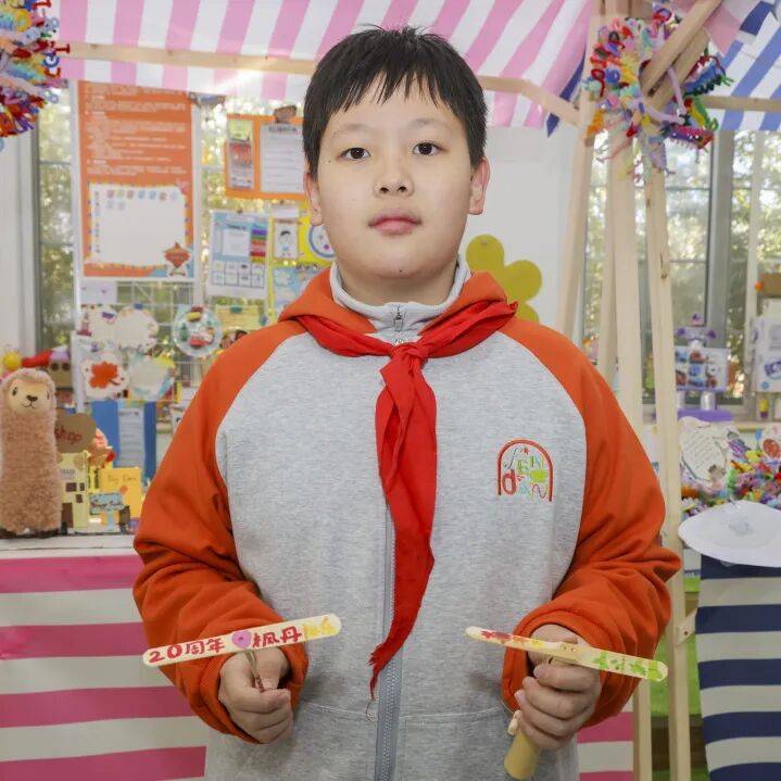 今年是枫丹实验小学建校20周年,同学们也把对学校的深情融入自己的创意作品中。