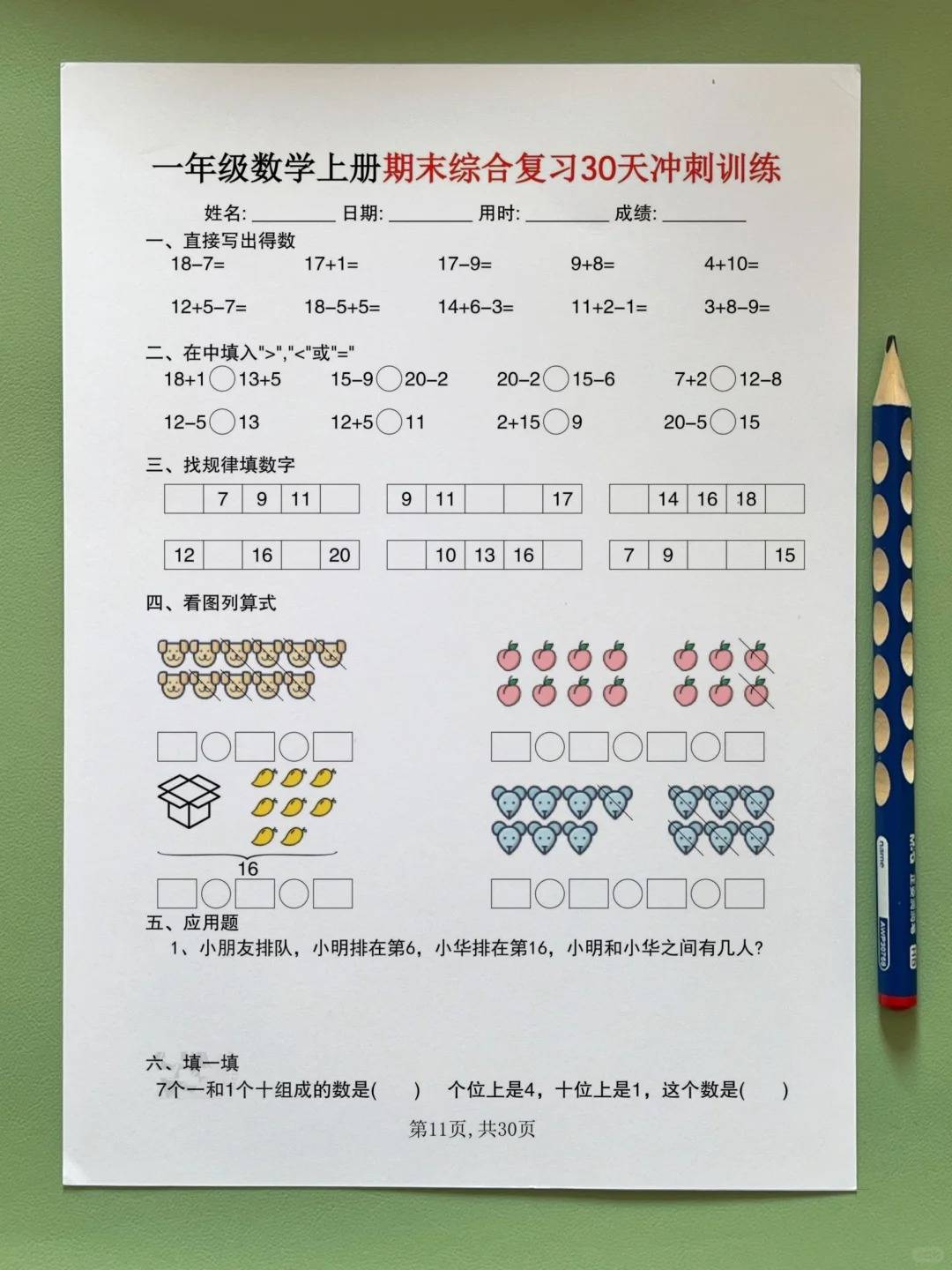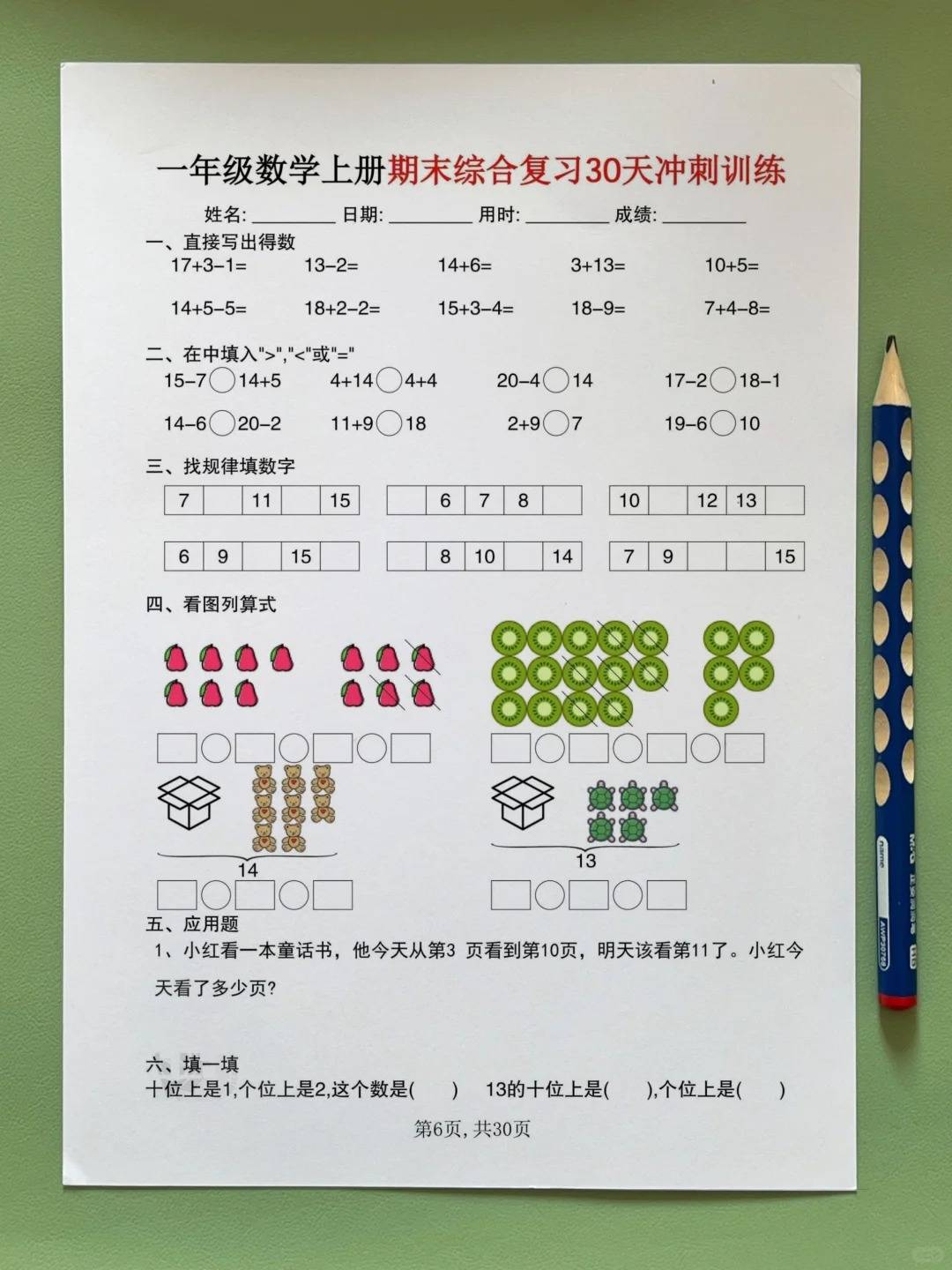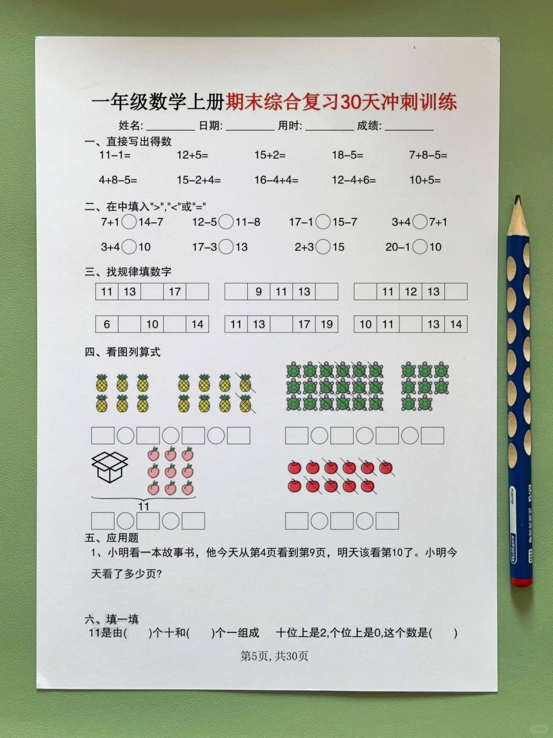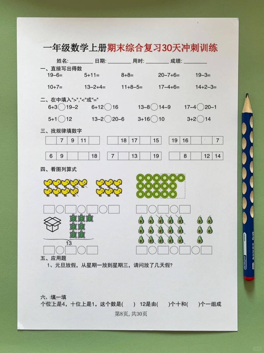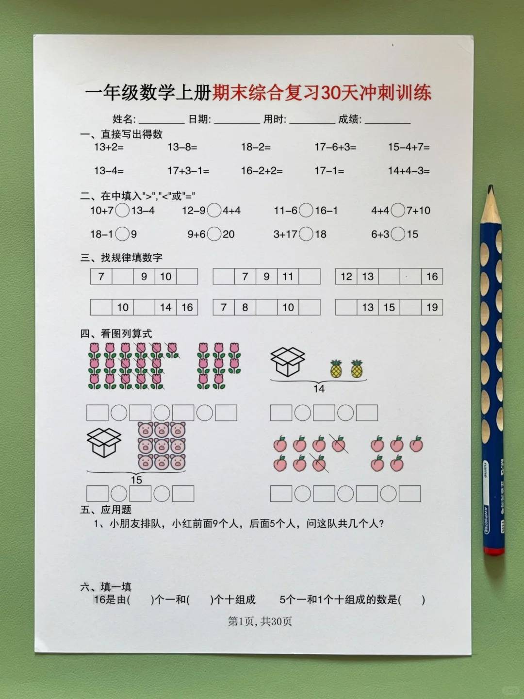 一年级数学期末想稳拿分,又怕孩子练得杂、抓不住重点?别慌!2025 秋小学一年级上册数学【30 天期末稳分训练】来啦!精准抓牢上册核心考点,每天 10 分钟轻量练习,帮孩子把基础打扎实,期末基础题不丢分!