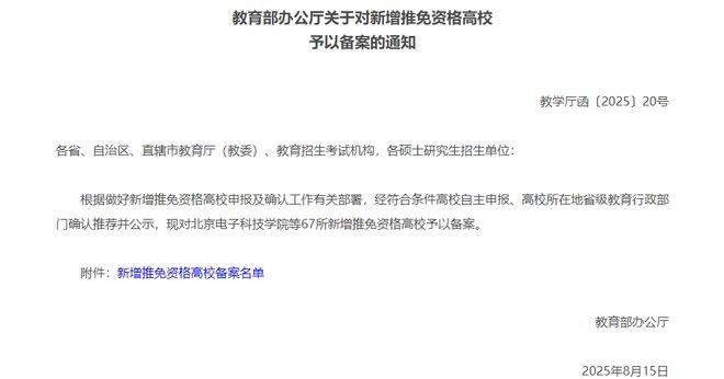 今年教育部还增加了67所推免资格高校。