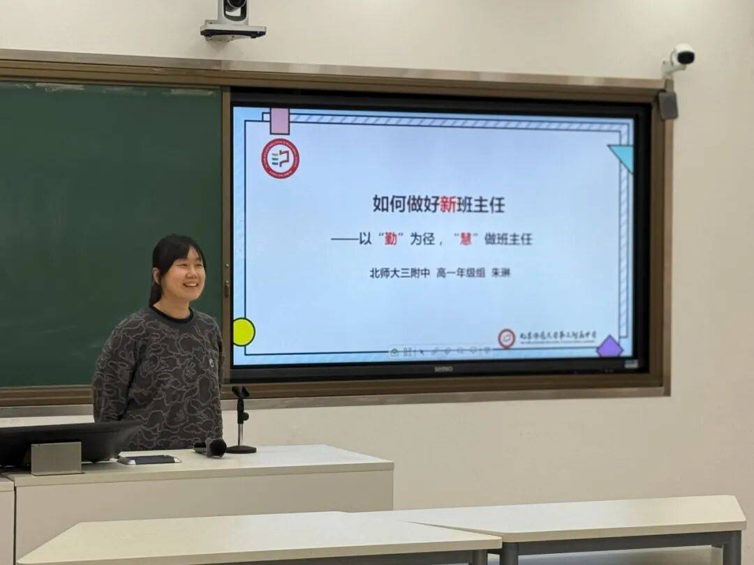 朱琳老师以《如何做好新班主任——以“勤”为径,“慧”做班主任》为题分享经验,剖析班主任工作的底层逻辑。她指出,“勤奋”是基础,“智慧”是升华,二者相辅相成。她将“勤”具体化为“五勤”:勤观察,深入学生日常找准问题;勤沟通,搭建信任桥梁;勤记录,推动工作系统化;勤求教,借鉴先辈经验;勤思考,形成个人带班风格。她提醒新班主任,“勤”需有方向、讲方法,要在琐碎中见系统、在重复中求创新。讲座案例生动、干货满满,为新班主任提供了切实可行的成长指南。
