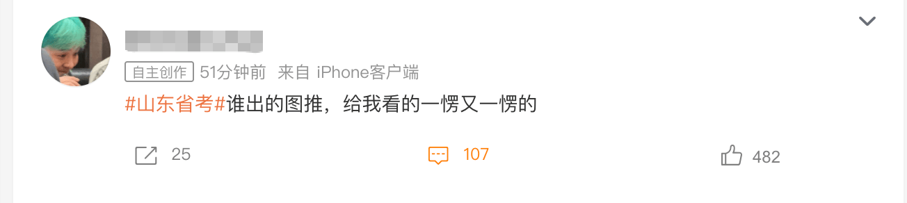 山东省考同样难住了不少考生,有考生直呼:山东省考谁出的图推,给我看的一愣又一愣的 ,还有网友表示:山东的高考难也就算了,图推也让人看不懂。可见山东省考图形推理是真难,不过也有网友表示:图推还行,十个看出来八个左右,蒙了俩,觉得资料好难,花了45分钟,后面言语都来不及读题,数量更是没时间看。可见山东省考不仅图推难,题量也大。