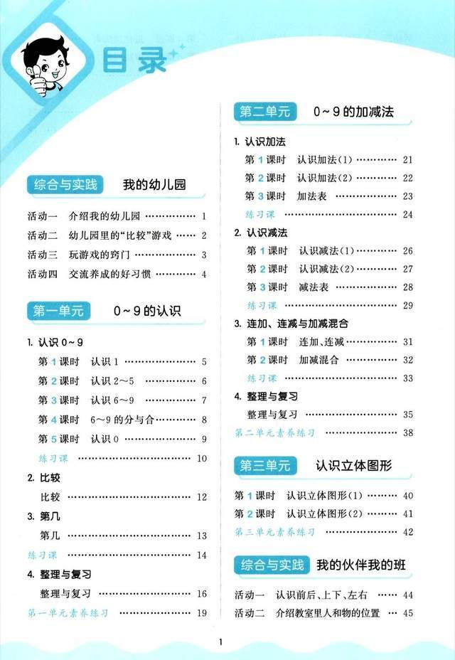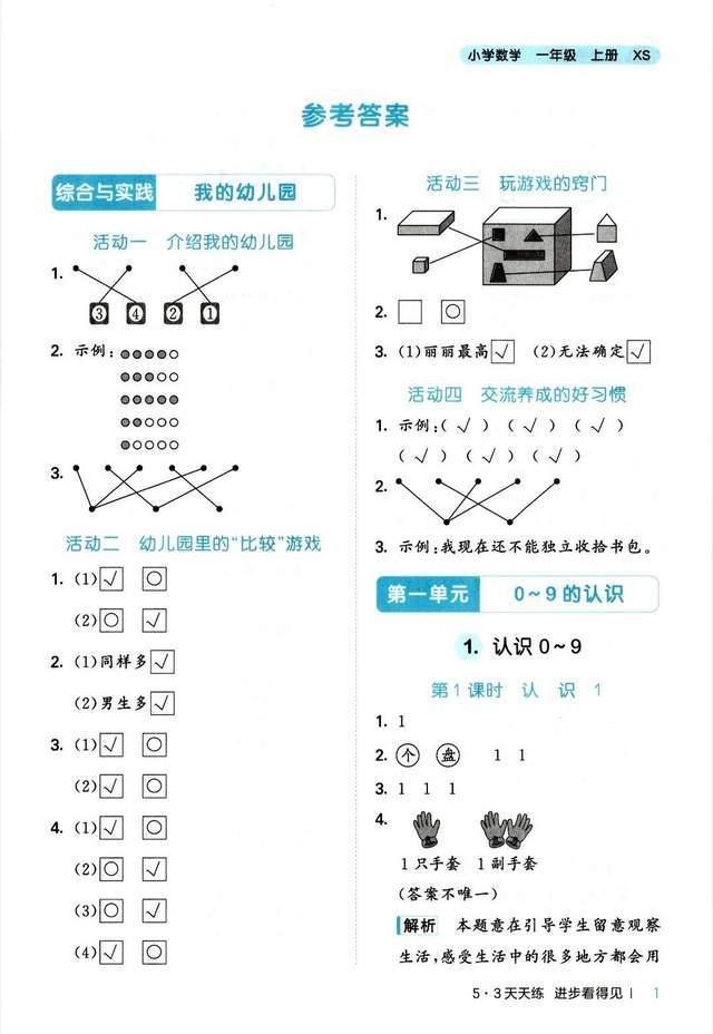 今天为大家分享:这份一年级上册数学学习资料,以 “同步适配 + 趣味启蒙” 为核心,构建了贴合低年级认知特点的学习辅助体系。从内容构成来看,它包含综合与实践活动、单元同步课时练习、单元达标测评卷及独立成册的参考答案,同时覆盖了 “0~9 的认识”“20 以内的加减法”“立体图形认知” 等一年级上册核心知识模块;每个知识板块都细化为 “生活情境题 + 基础训练题”,搭配单元达标练习与综合测评内容。