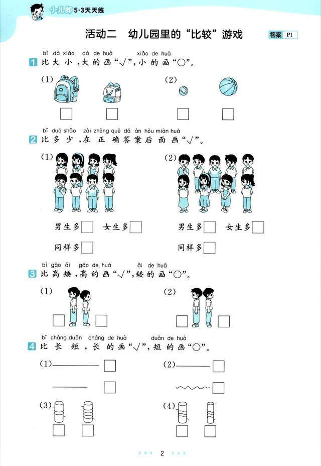 从覆盖的学习方面来说,它实现了多维度的兼顾:在知识层面,既囊括了 “数的认读、大小比较” 等基础内容,也延伸了 “数的分与合、简单加减法运算” 等进阶知识;在能力层面,既训练了 “数数、连线、分类” 等基础技能,也通过 “幼儿园场景比较、生活物品计数” 等题目,提升了知识感知与实际应用能力;在学习体验层面,以 “我的幼儿园” 等趣味活动为切入点,将数学知识融入低龄学生熟悉的生活场景,降低了学习的陌生感。