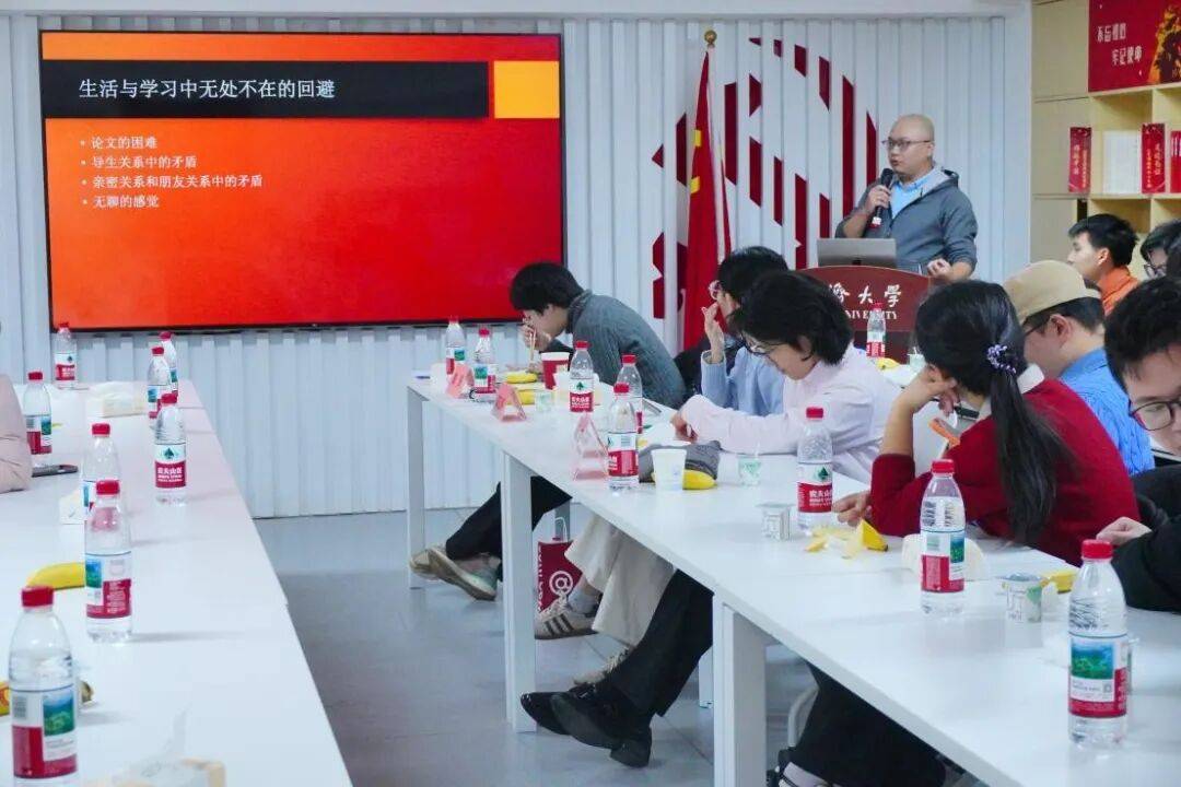 他鼓励大家在安全的环境中练习表达情绪、觉察内在体验,通过建立边界、提升沟通能力、接纳不完美等方式更好地与自己和他人相处。整场分享温和而有力量,帮助同学们学习以更健康的方式面对情绪与关系,在科研与生活中保持内在韧性。