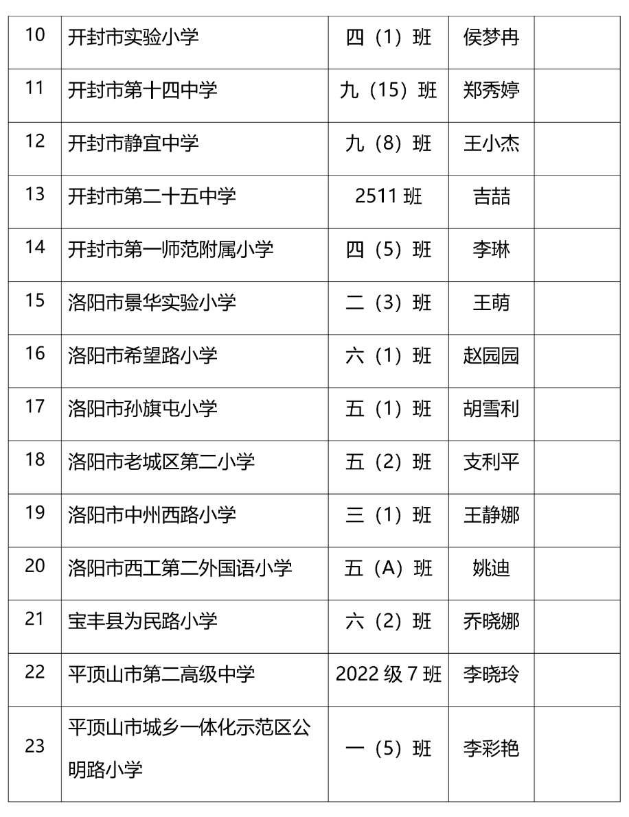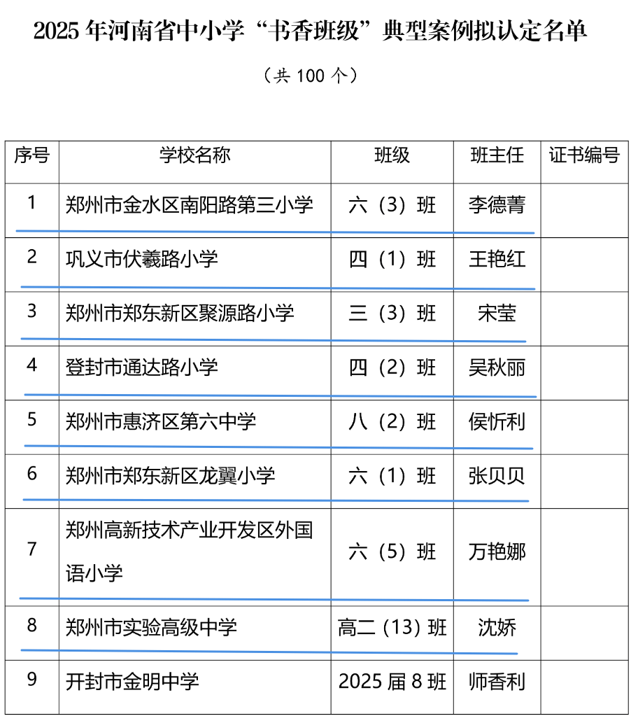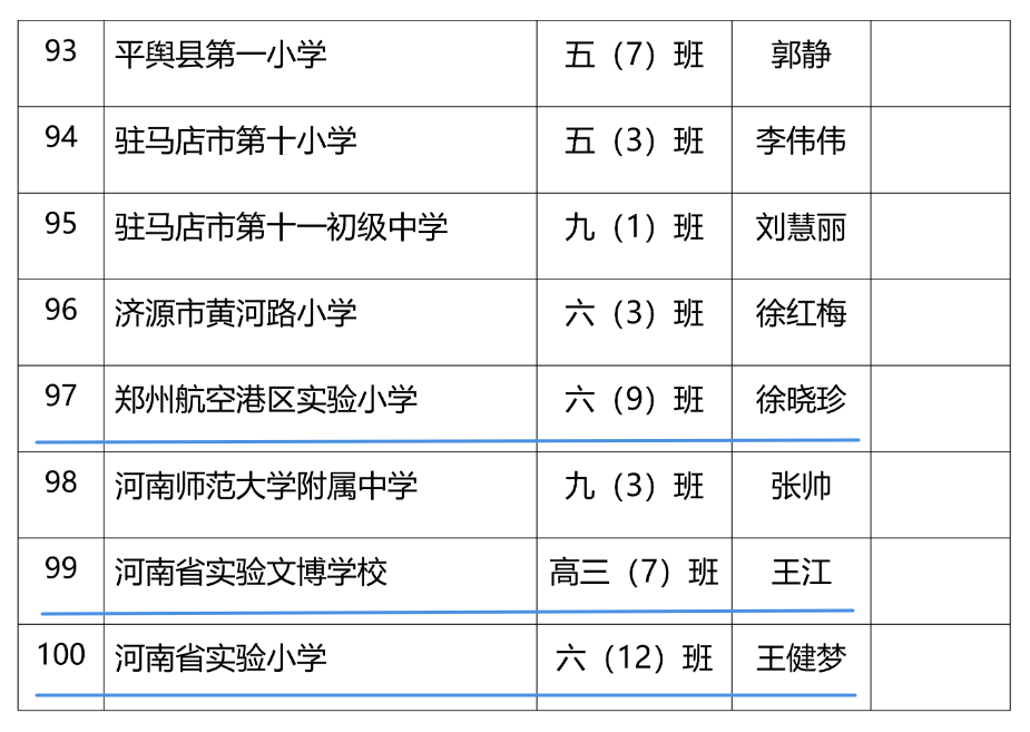 郑州市金水区南阳路第三小学六(3)班等100个班级