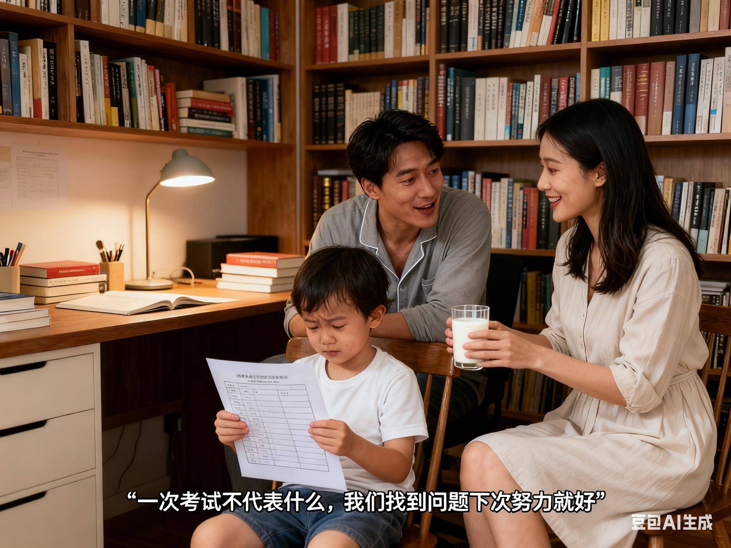 但他的父母并没有一味地批评指责他,而是和他一起分析错误的原因,鼓励他下次做得更好。