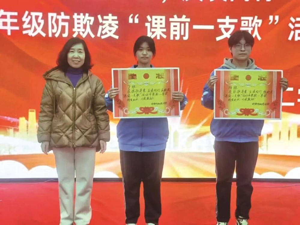 为筑牢校园安全防线,缓解学生学业压力,传递心理健康正能量,杜绝校园欺凌行为,12月5日,邯郸市钢苑中学高二年级“课前一支歌”合唱展示活动在豫樟楼温情启幕。副校长张树欣、特长部主任黄剑英、综合实践处主任程一兵到场指导。黄剑英主任与音乐教师裴文辉、褚晶晶共同担任评委,见证少年们以歌为翼、向阳而行的青春风采。