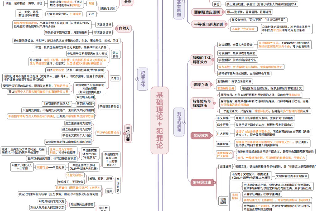 刑法和民法的知识点数量多,这就导致课程量比其他科目长很多。内容多,加上体系复杂,学完不梳理,后面就做不对题,你会觉得这些知识点都是散的、混乱,彼此割裂联系不起来。