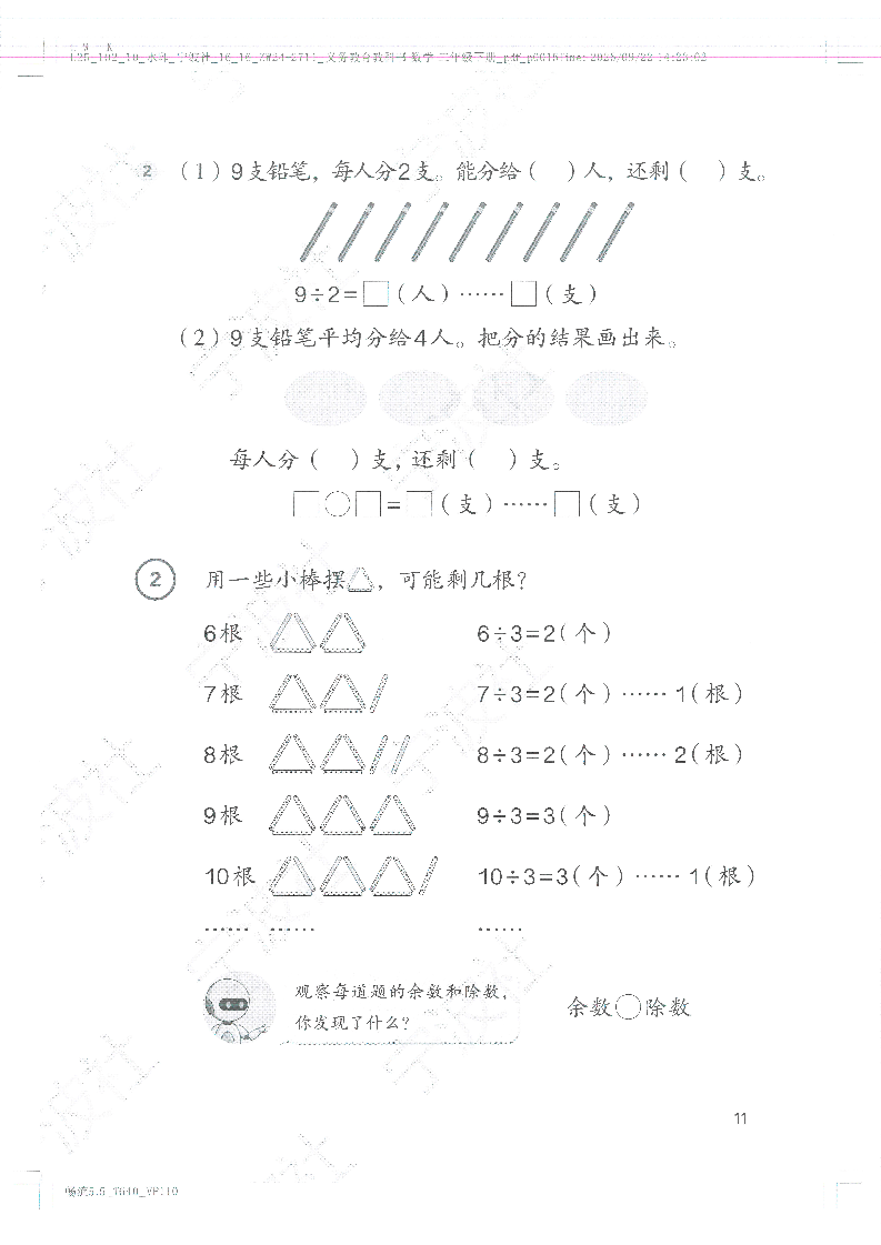值得家长重点点赞的是,新教材不仅趣味十足,更注重知识衔接与核心素养的科学培养。教材遵循低年级认知规律,将表内除法分两个单元循序渐进教学,先学 2-6 的乘法口诀求商,再拓展到 7-9 的口诀应用,既衔接一年级乘法基础,又为三年级混合运算铺路;通过 “数小棒认识万以内数”“用计数器理解数位含义” 等动手操作,强化数感与运算能力;图形运动单元通过折纸、拼搭、观察生活现象(如风扇旋转、电梯平移),培养初步空间观念。新增的推理单元用 “猜书的颜色”“填数字迷宫” 等趣味题目,悄悄锻炼逻辑思维;综合实践活动 “小小设计师” 鼓励孩子用图形运动知识创作图案,实现跨学科应用。知识点由浅入深、层层递进,既通过每日 10 分钟口算、错题闯关等轻量化练习夯实基础,又通过 “说解题思路”“画图示分析” 培养表达与思维能力,让孩子在 “做中学、学中乐”,平稳过渡低中段数学学习~