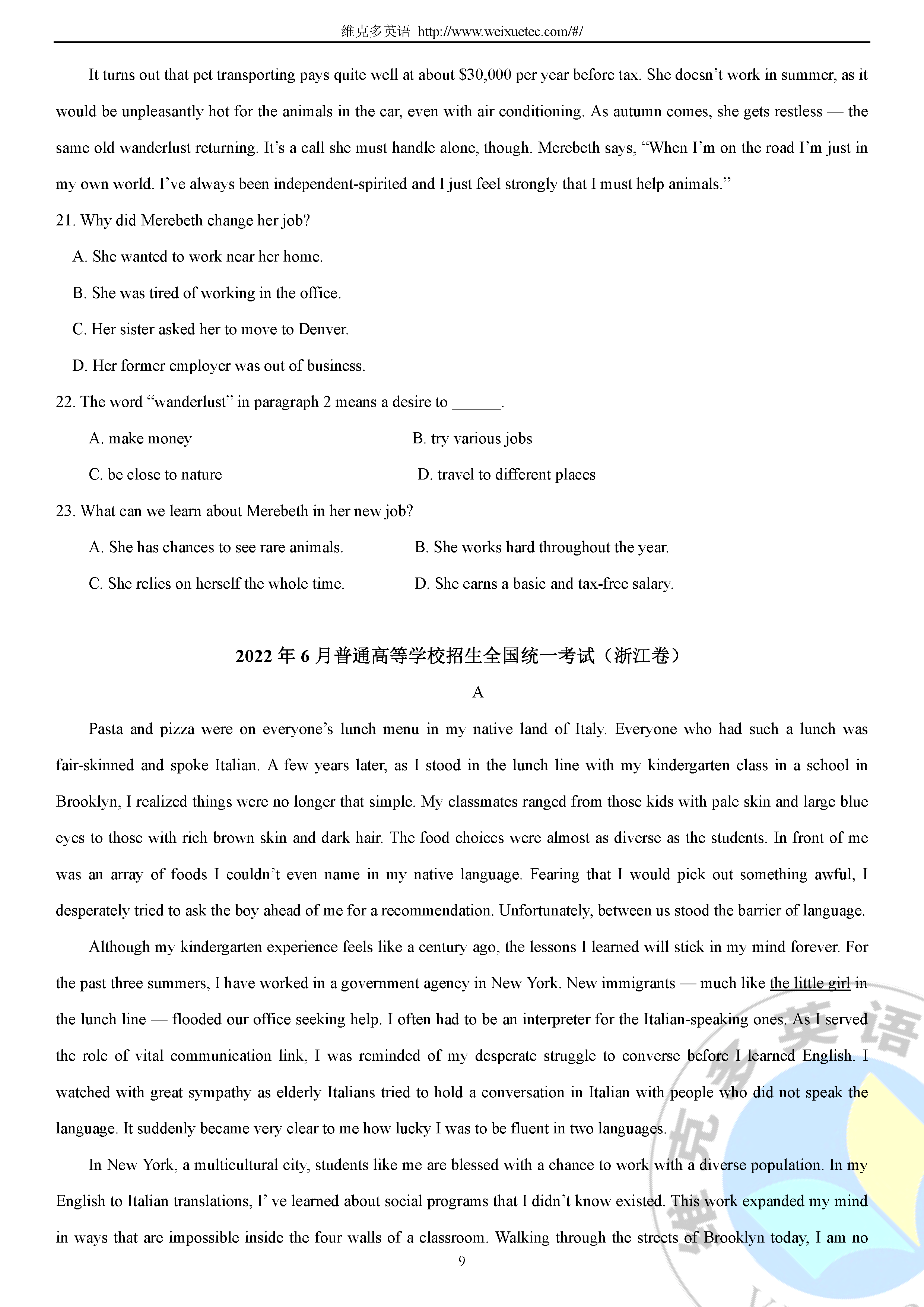 [礼物] 下载word版及答案可至维词教学系统:
