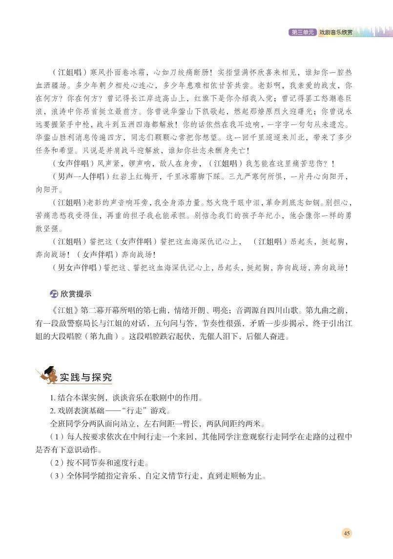 为了帮助高中生自主预习与有效复习,我们整理了2026湘艺版高中音乐必修6《音乐与戏剧》电子课本,教材突出跨学科思维与实际应用能力的培养,下面以图片的形式呈现给大家,希望可以帮助到大家。