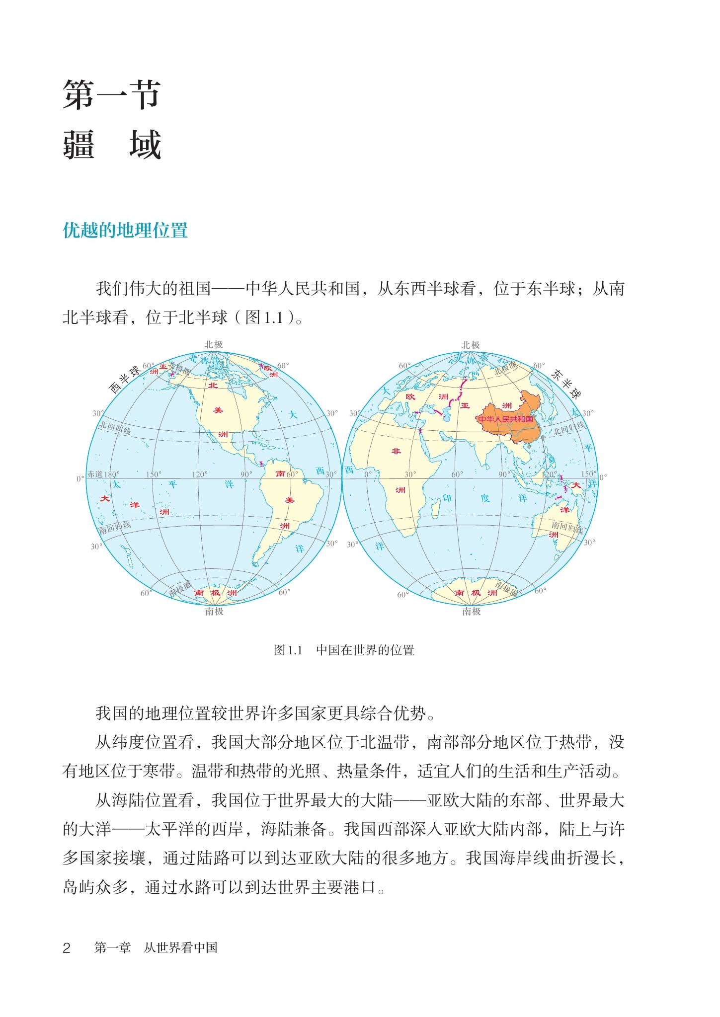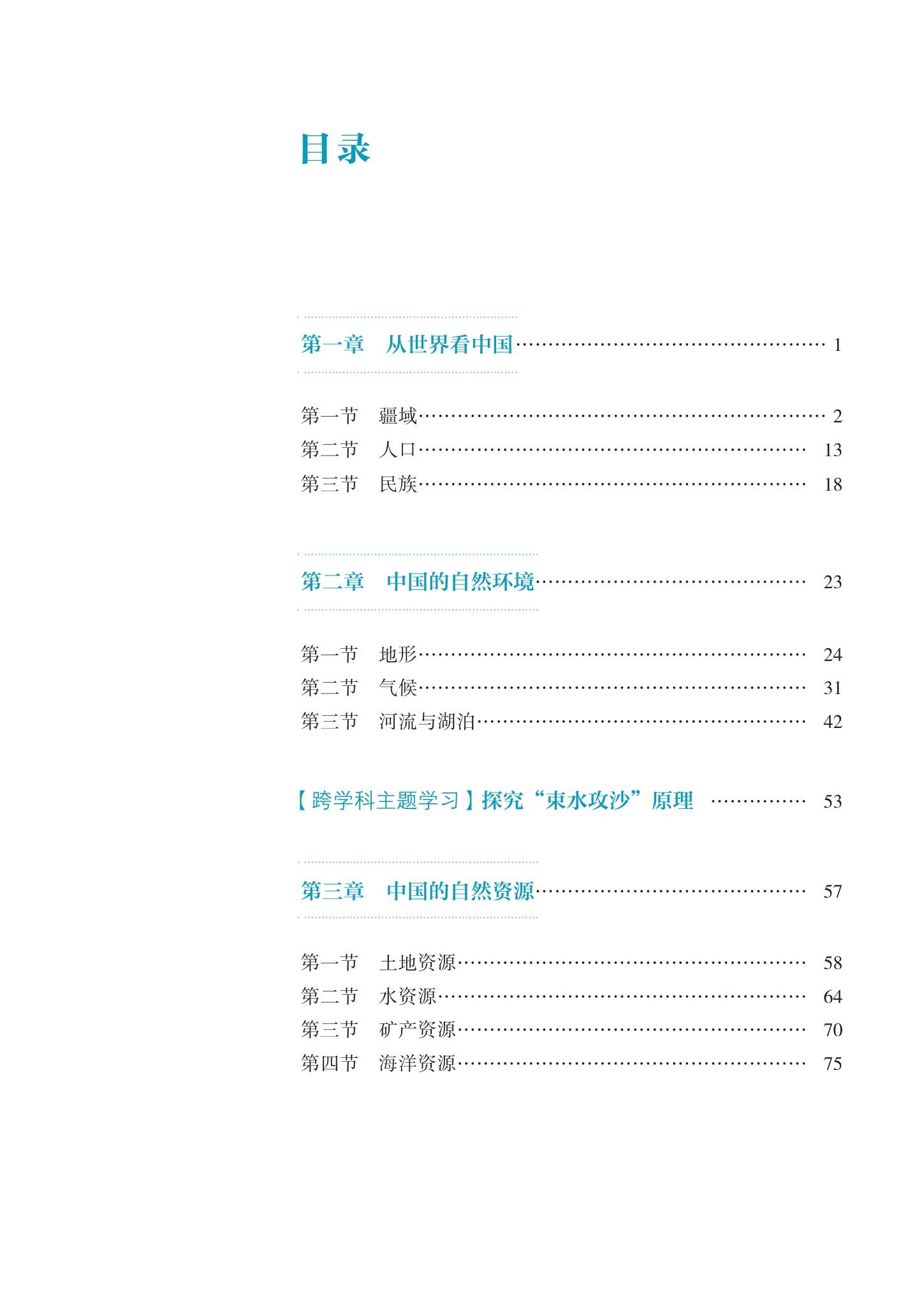 一:2024版最新人教版初中地理八年级上册电子课本教材目录: