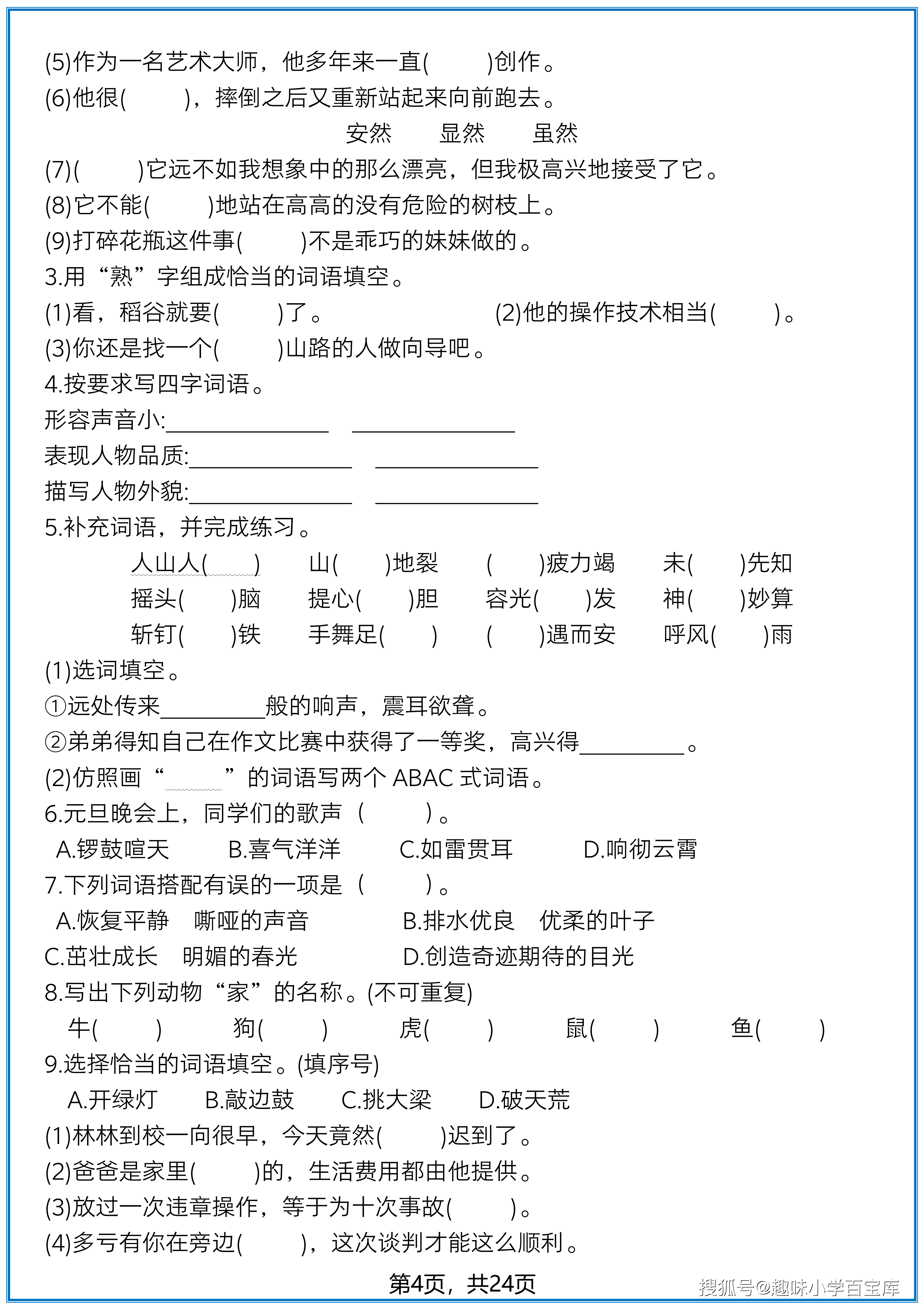 字形部分要注意 “形近字、同音字” 的区分:比如 “堵 / 著”“坚 / 竖” 这类字,需通过组词明确用法(“著名”“堵塞”);字音题的易错点是多音字和易读错字,像 “钉(dīng 钉子 /dìng 钉住)”“系(jì 系鞋带 /xì 关系)”,要结合语境判断读音。词语运用题更考验语境匹配能力:比如 “严厉、严肃、严格” 的辨析,“表情严肃”“严格把关”“严厉批评” 是固定搭配;惯用语(如 “开绿灯、挑大梁”)要结合场景选择,“首次迟到” 对应 “破天荒”,“承担主要责任” 对应 “挑大梁”。此外,词语补充题(如 “人山人海、山崩地裂”)要注意成语的固定结构,避免写错别字。
