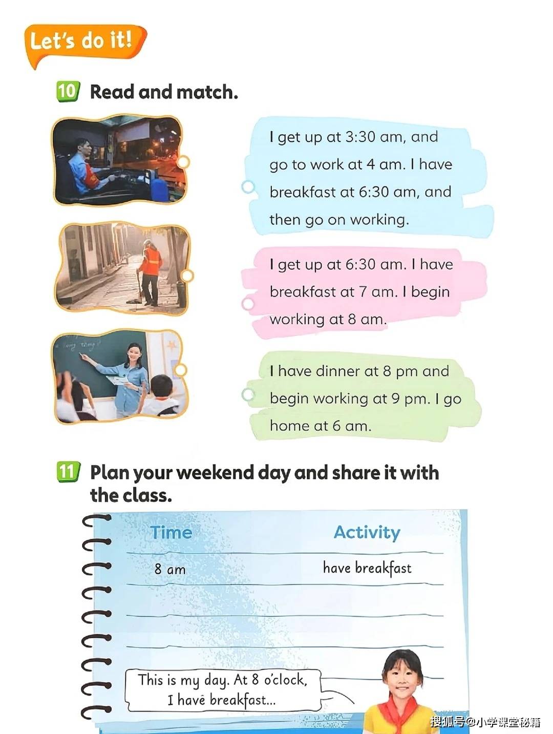 教材的匠心还体现在全球视野的拓展。“Language in use” 板块通过世界时区地图,展示北京、伦敦、纽约等城市的时差差异,让孩子在模拟跨国电话对话中,明白 “It's 8:00 PM in Beijing” 对应 “It's 7:00 AM in New York”,在语言练习中建立全球化思维。而 “Plan your weekend day” 等实践任务,则鼓励孩子用英语规划自己的周末,真正实现 “学用结合”。
