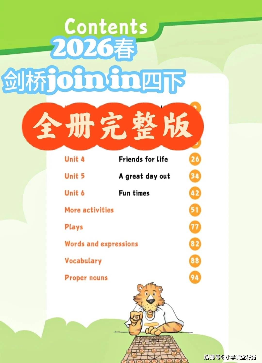 当新学期的铃声响起,翻开 2026 春新版《剑桥 Join In 英语》四年级下册,你会发现英语学习已不再是孤立的单词记忆,而是一场充满生活气息的沉浸式探索。这本教材以 “时间管理” 为开篇主题,用层层递进的趣味设计,让孩子在真实场景中自然掌握语言工具。