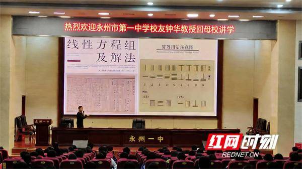 红网时刻新闻1月19日讯(通讯员 伍慧 余淑君)冬日蕴情,桑梓暖融。1月17日,永州一中蘋洲会堂内热潮涌动,学校杰出校友、南方科技大学数学系钟华教授重返母校,以一场贯通古今、融汇中西的数学思想盛宴,为师生带来深刻启迪。此次活动不仅是一次知识的传承,更是一场精神的寻根与文化的接力。