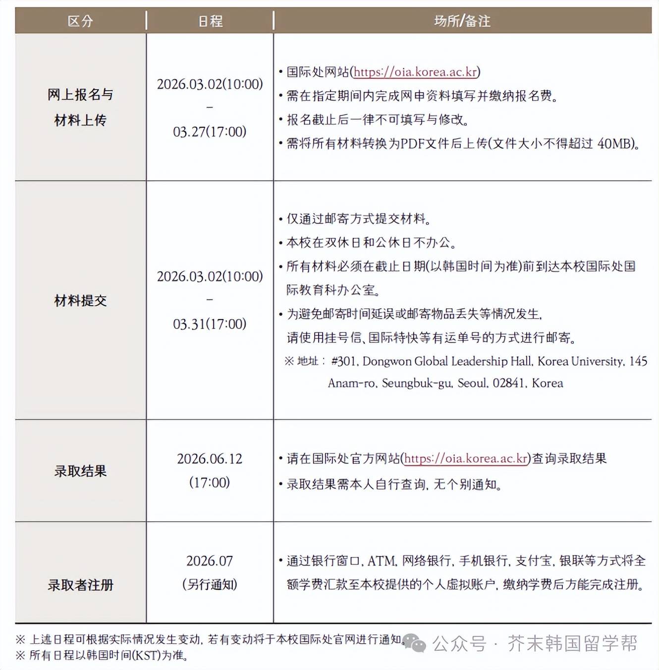26年9月高丽大学本科新入招生简章【首尔校区】