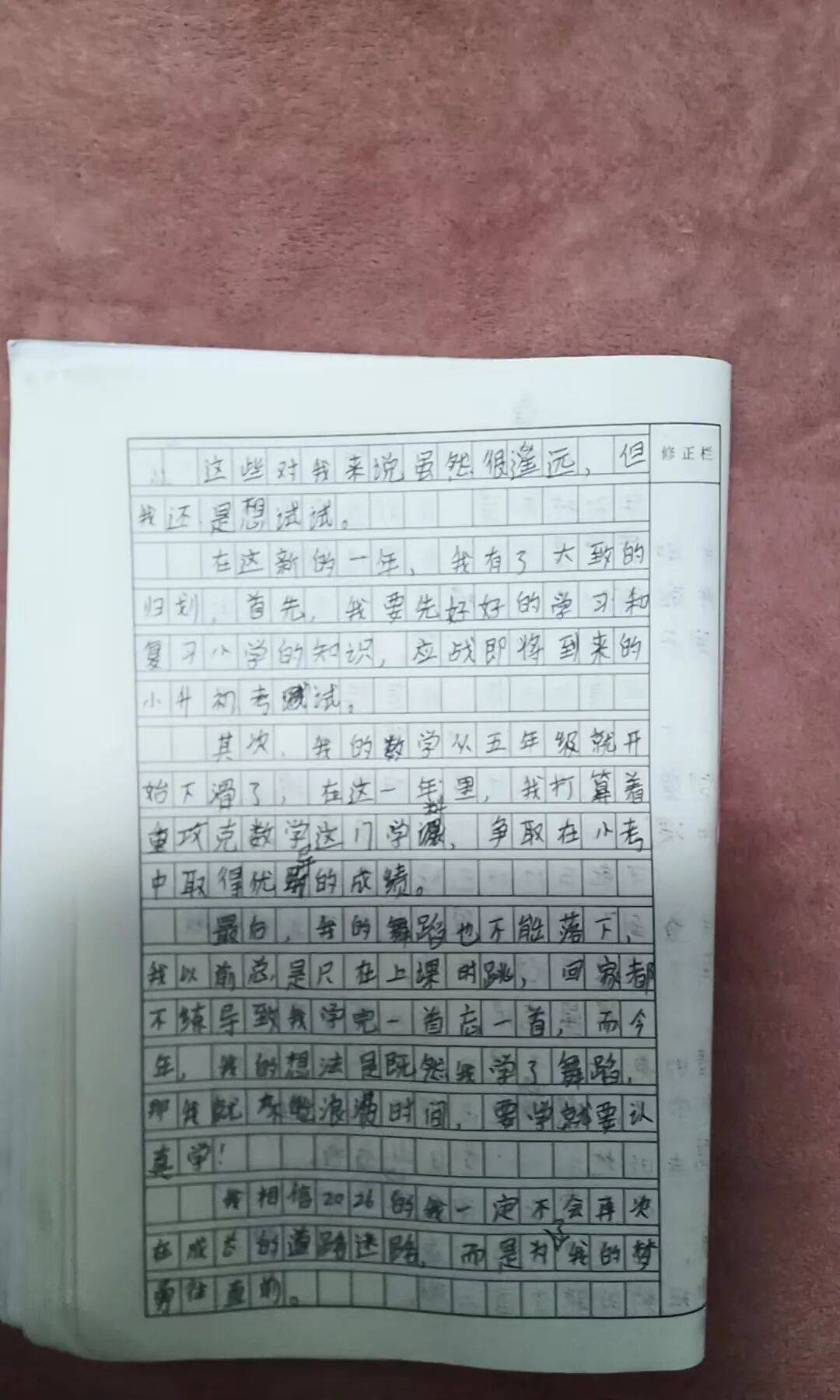其次,我的数学从五年级就开始下滑了,在这一年里,我打算着重攻克数学这门学科,争取在小升初考试中取得优秀的成绩。
