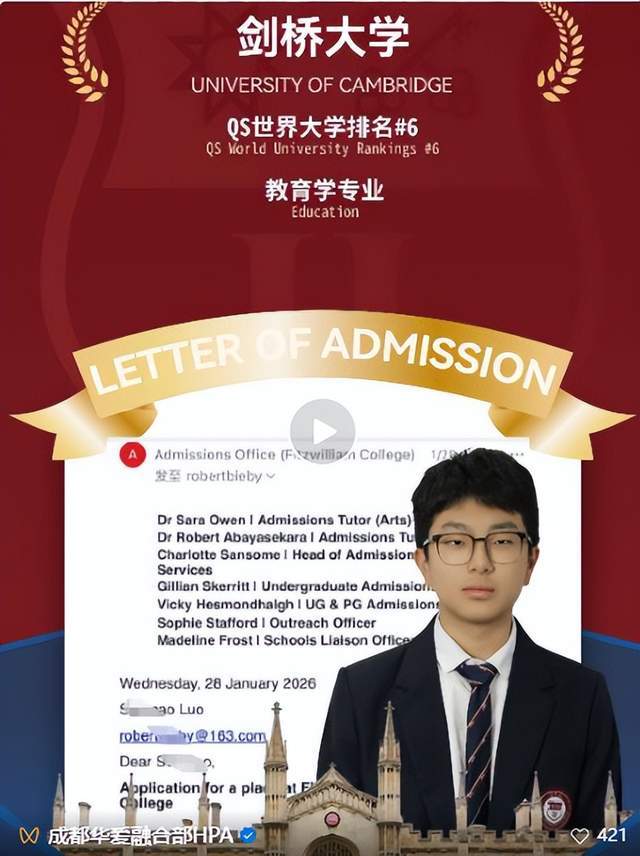 如今,剑桥大学教育学专业的录取通知书如期抵达。这个习惯性说“还不够好”的少年,完成了一场关于思考、关怀与成长的静默证明。现在让我们一起走进他的故事。