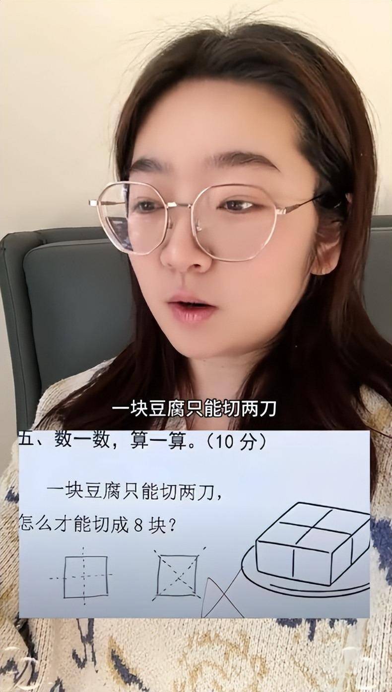 “一块豆腐,两刀切8块?”家长质疑题目不合理,老师:就你不会