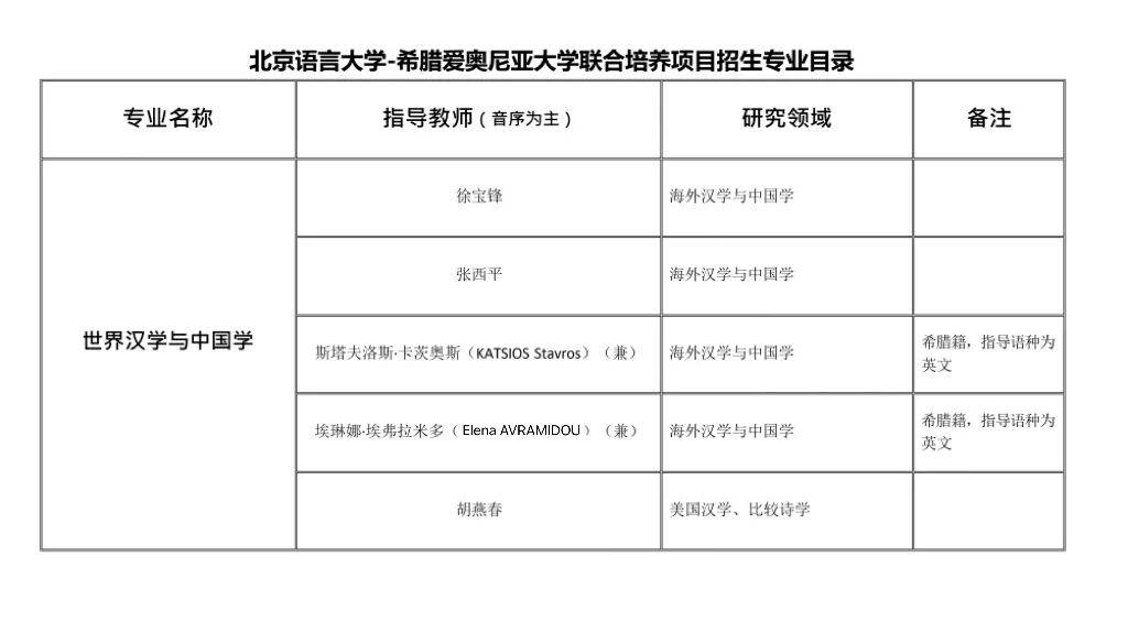 注:申请人须同时满足北京语言大学“世界汉学与中国学”和爱奥尼亚大学“文化遗产研究、汉学与中国研究和翻译研究”专业的博士入学要求。