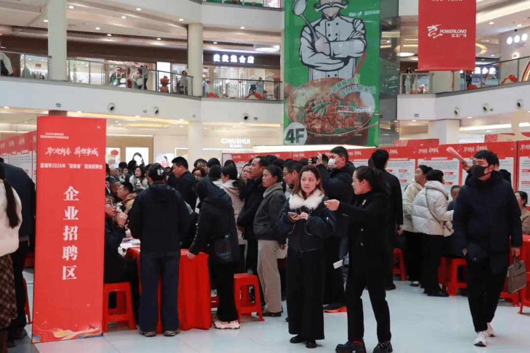 近日,盐城市人社局在亭湖区宝龙城市广场成功举办2026年“贺新春”现场招聘会,旨在抢抓春节后就业黄金期,精准服务返乡人员、高校毕业生、失业人员等重点群体,打通就业服务“最后一公里”。