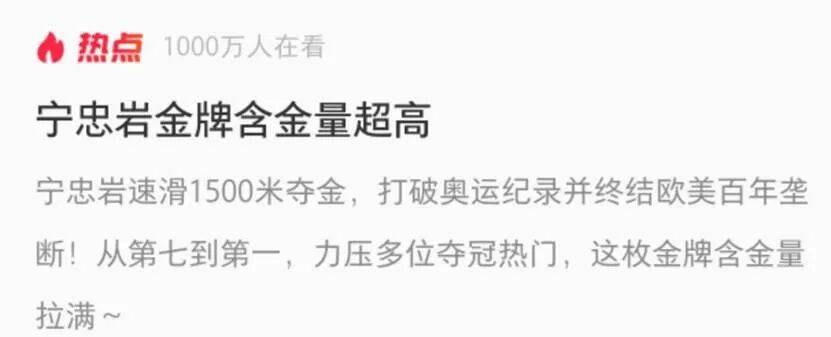 社交媒体上,“宁忠岩金牌含金量超高”上了热搜。