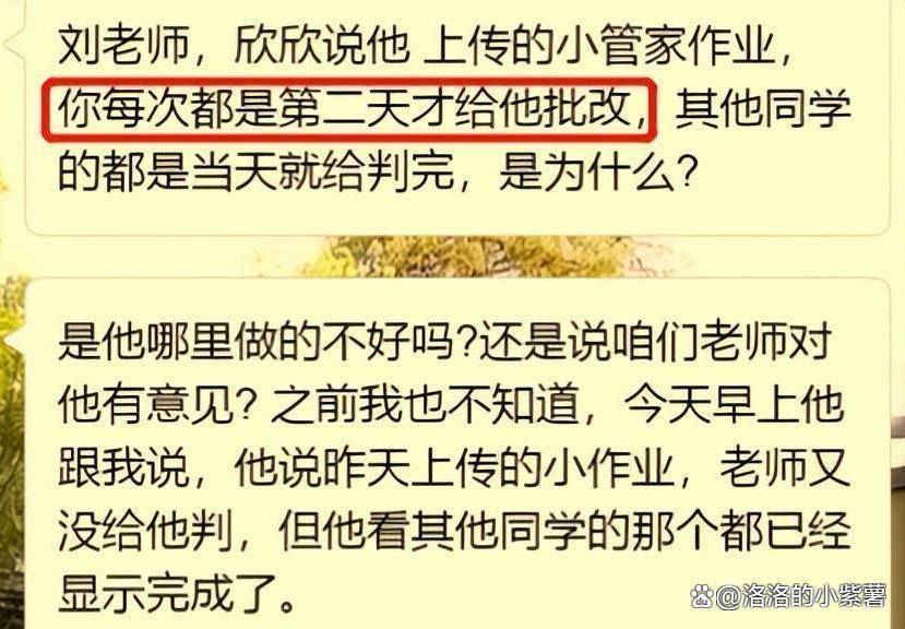 有一位家长在班级群中质问老师的引发广泛关注,起因是这位家长听孩子反映:其他同学的作业当天就能批改完成,唯独自家孩子的作业总要等到第二天,家长由此认定老师“区别对待”,情绪激动地在群里发问:“是不是对我家孩子有意见?”