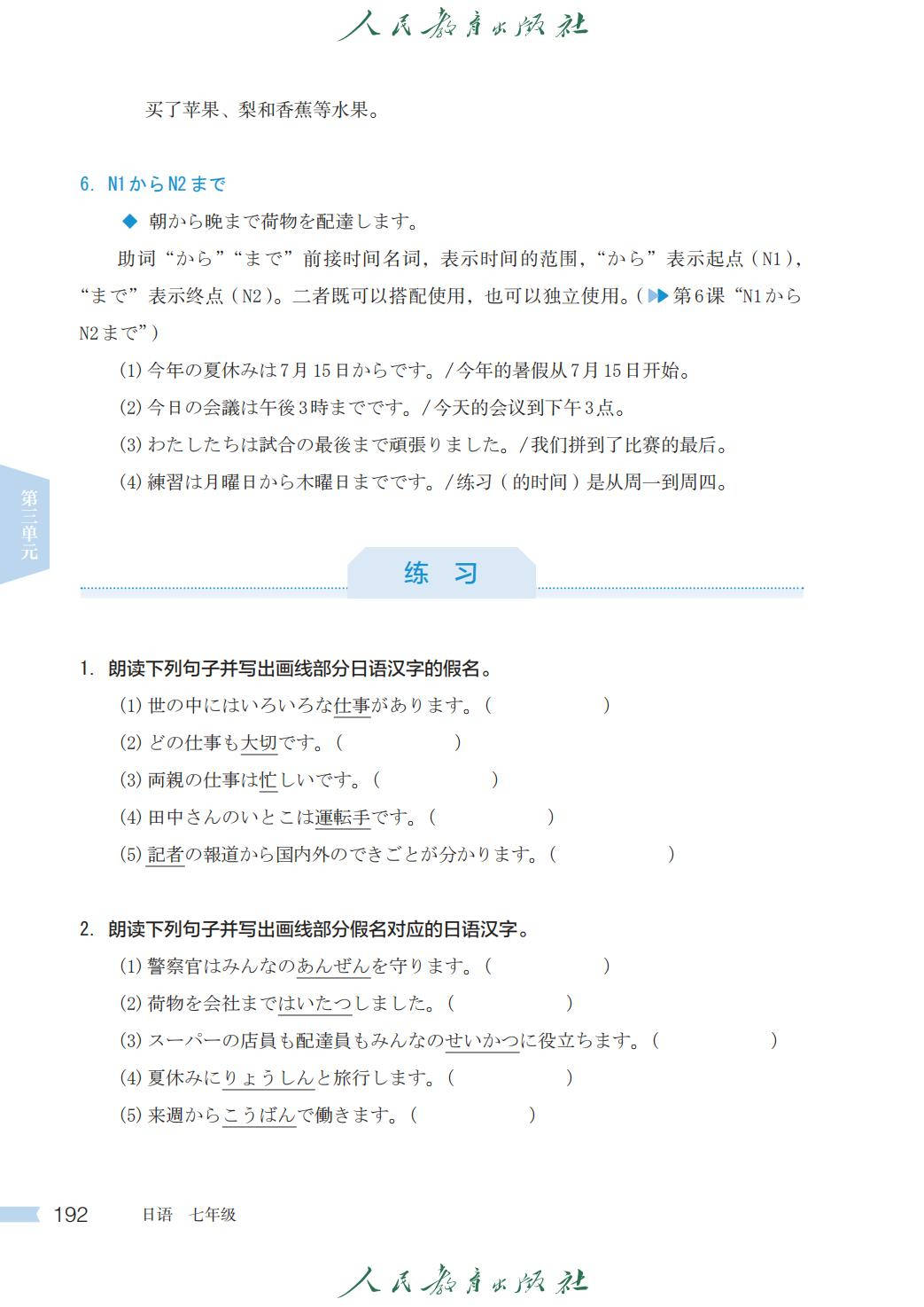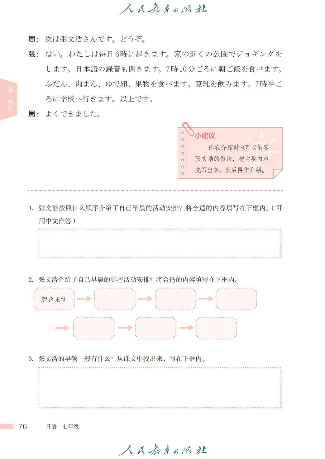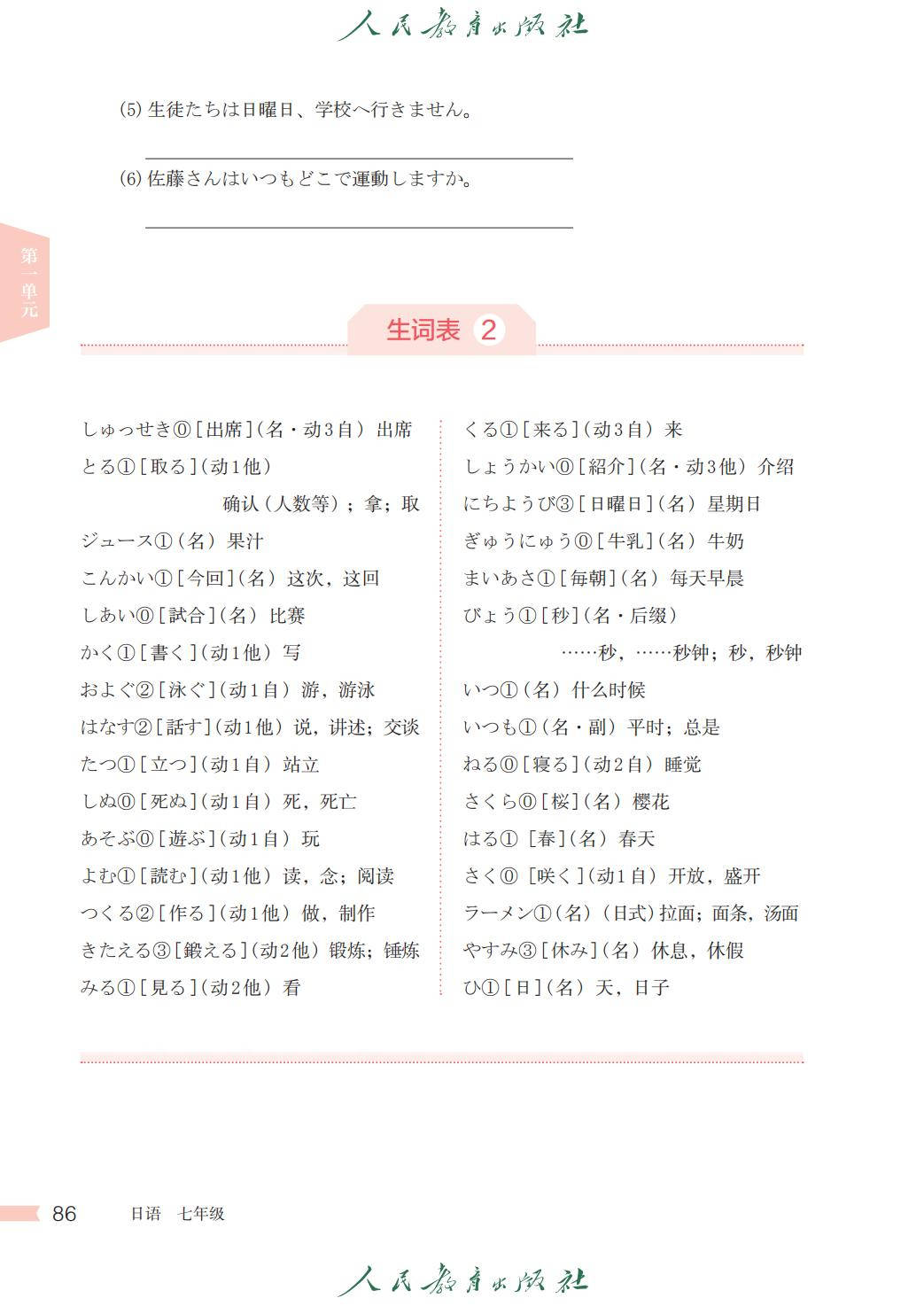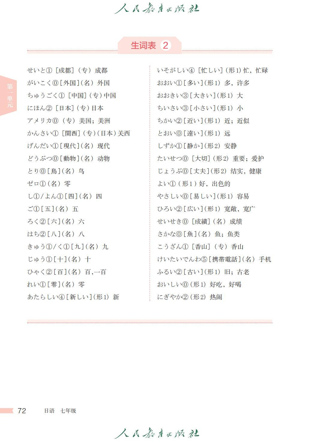 人教版七年级日语全一册电子课本图片版在线阅读