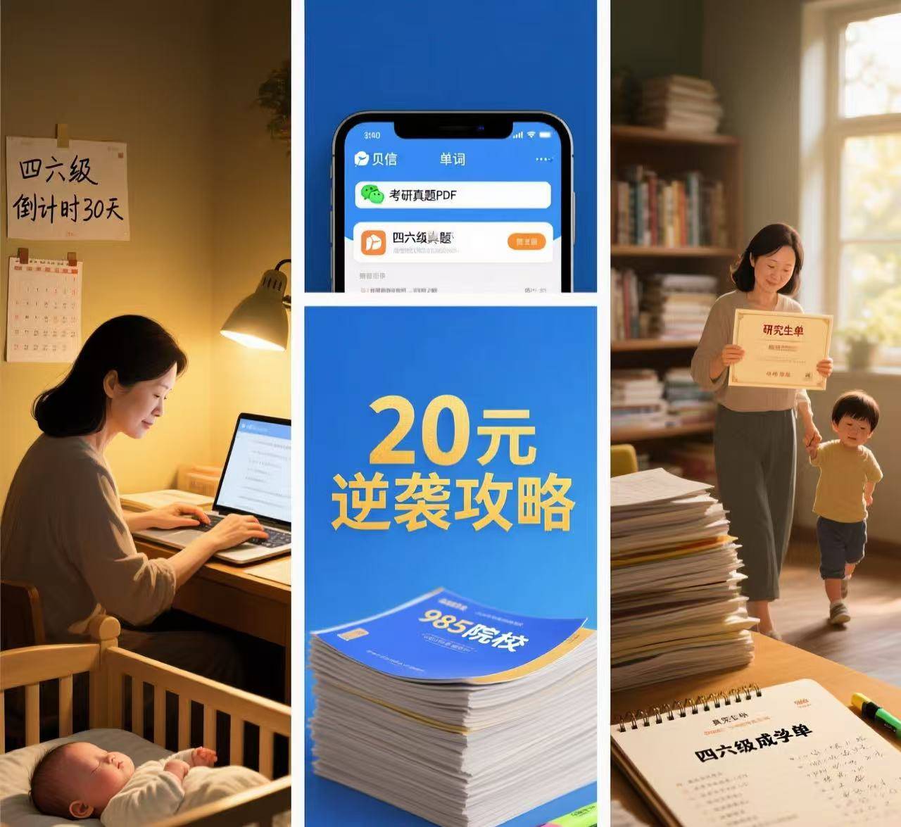 - 心法:别贪多,但别间断。 每天早起喂奶、午休、睡前,用这些碎片化的5分钟,刷完当天的任务。秘诀不是一次背多久,而是每天都见面。坚持100天,词汇量足以应付考试。