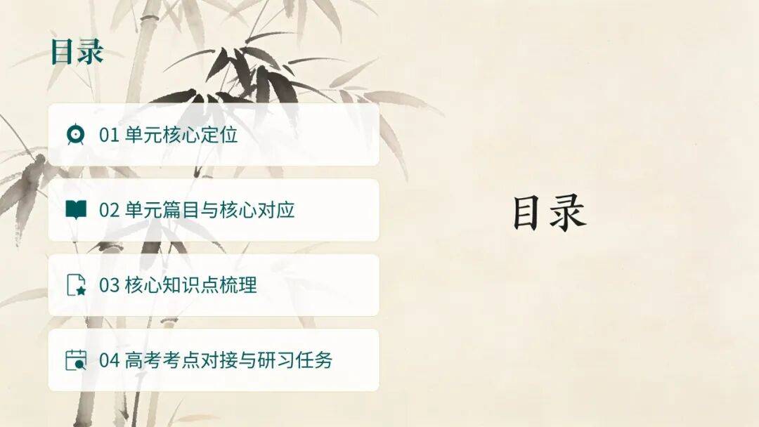 ③ 凸显民歌特色(2分):重章叠句是《诗经》“风”的典型特征,与单元《芣苢》的文本特点高度契合,既体现了古代民歌的艺术魅力,也让劳动的美好形象更深入人心。