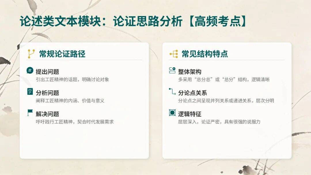 核心考点:论证手法、逻辑结构、主旨内涵(对接《以工匠精神雕琢时代品质》)